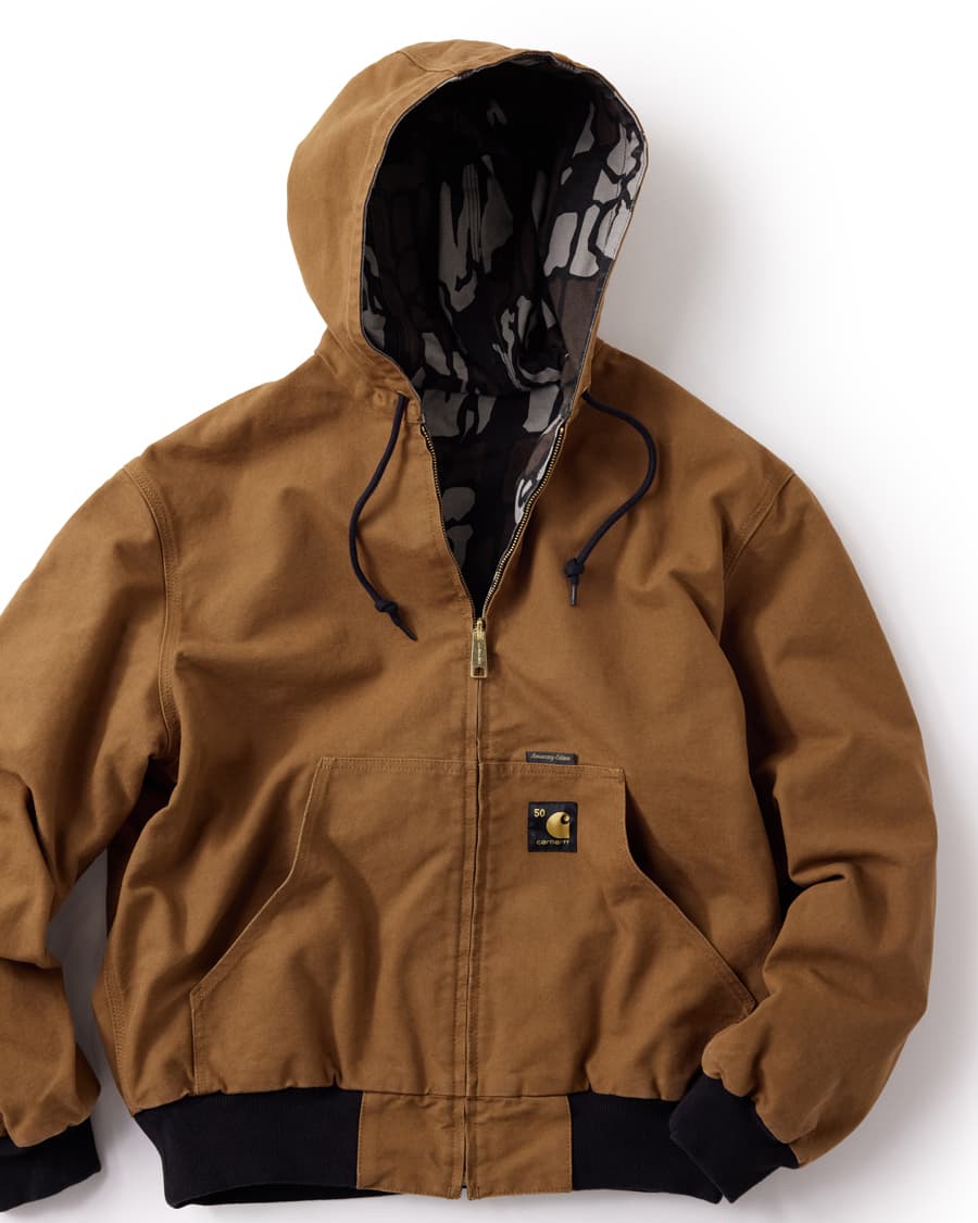 1975年にデニム素材のモデルが初めて発売され、アクティブジャケットの歴史こそカーハートの歴史であると言えるほど象徴的なこのアイテム。NasやEminem、Kanye Westなど名だたるラッパーが着用し、音楽やスケートボード、映画、サブカルチャー、世界中のあらゆるシーンで存在感を発揮し続けたこのアイテムが今年で生誕50周年を迎えた。