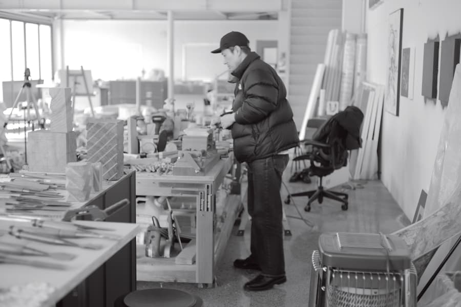 ブレイクダンサーとしての身体感覚を基に、木彫やドローイングなど多岐にわたる表現を展開する彫刻家兼アーティスト。2014年以降国内外で多数の個展を開催し、現代美術とストリートカルチャーを繋ぐ独自のスタイルで世界的に高い評価を得ている。
