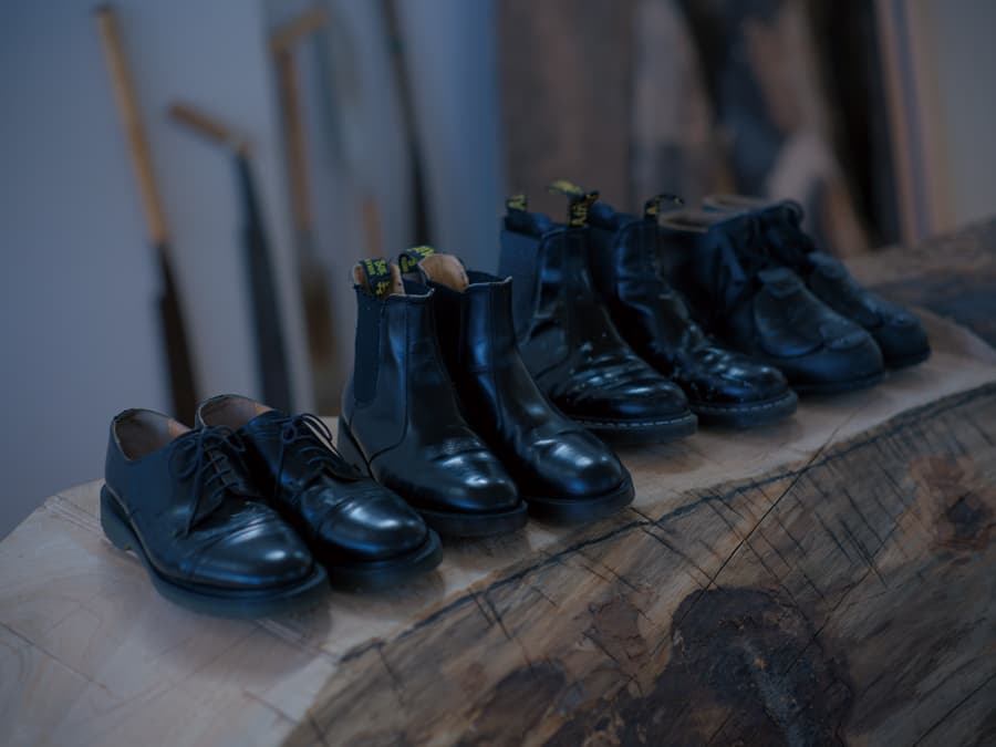 ダンスや動きをテーマにしたアート制作を行う小畑多丘の足元は、かつてスニーカーが絶対的な存在だった。ブレイキンの激しい動きを支えるのは、決まってキャンバス地のオールスター。そんな彼がレザーという素材に触れたのは、2019年から1年ほど滞在したロンドンの地だった。「それまで革靴はあまり履いたことがなかったのですが、ロンドンにいる時に『ロンドンと言えば革靴だな』とふと思い、カムデンタウンのブリティッシュ・ブーツ・カンパニーに行ってみたんです。そこで初めてソロヴェアーという革靴メーカーを知ったのですが、これがもう驚くほど履きやすくて、スニーカー感覚で履けることに感動しました。ロンドンでは毎日歩き倒してましたし、歩道もゴツゴツしてますから、まさに最高の相棒になりましたね。それ以降さまざまなレザーシューズを履きましたが、やっぱりあのソロヴェアーが全ての入り口でした。レザーシューズは消耗品のスニーカーと違って、ソールを直せばまた使える。高校の時もリーガルのローファーを直しながら履いていたなと、最近ふと思い出したんですよね。大人になるにつれ、単にブランドとして良いものという基準だけでなく、自分との親和性や選ぶための確かな理由が必要になってきたんです」。