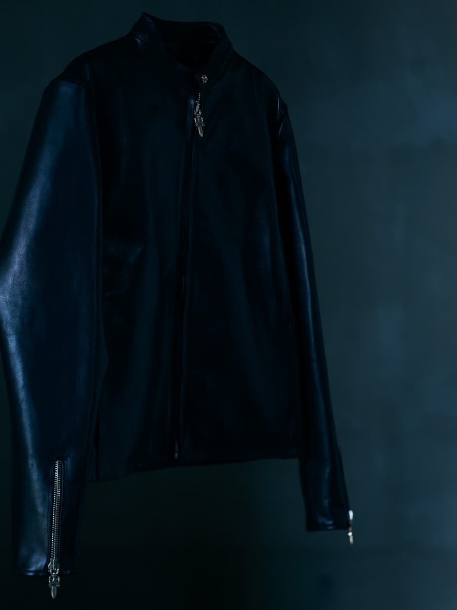 CHROME HEARTSのはじまり。それは創業者であるリチャード・スタークがバイク乗りのために理想のレザーウエアを自作したところからである。つまり、原点はシルバージュエリーではなくレザージャケットにある。最上級のレザーを使用し、シルバーをあしらったラグジュアリーさと無骨さが両立した、まとう芸術品ともいえるジャケット。その美しきフォルムを記録した。