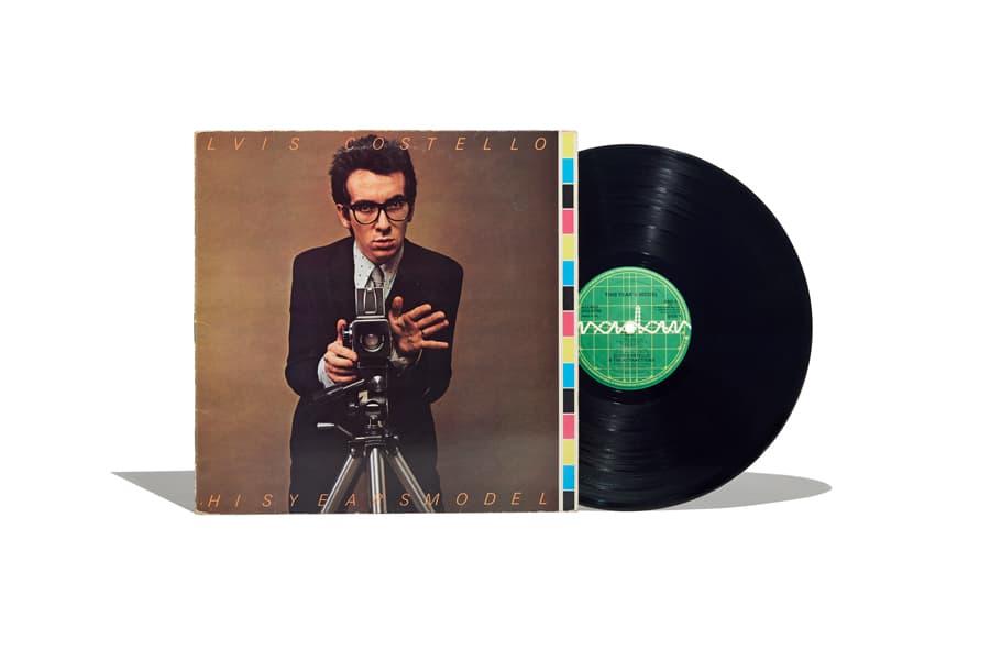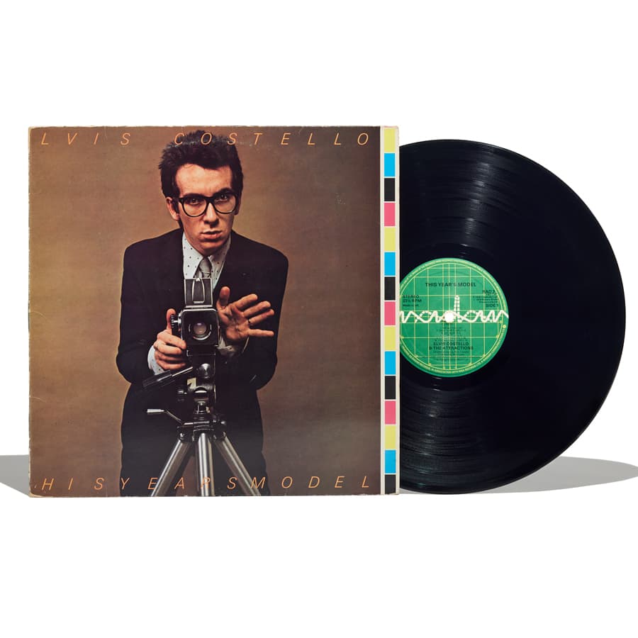 1978年にリリースされたエルヴィス・コステロの『This Year’s Model』。カメラとメガネと聞いて頭に浮かぶのは、このアルバムしかない。コステロといえば、スーツスタイルにウェリントン型のメガネ、クラシックなハット、遊びの効いたチェックや柄のシャツにジャケットが定番で、そのナードでやんちゃなスタイルがいかにも英国らしい。本作は彼のセカンドアルバムとして、バックバンドに、ジ・アトラクションズを率いた最初の作品となった。ファーストアルバム『My Aim is True』に続き、今作もニック・ロウをプロデューサーに迎え、マネージャーであるジェイク・リヴェラによって設立された新レーベル、レイダーからのリリース。ツアーに明け暮れる多忙なスケジュールの真っ只中で、クリスマス前後の約11日間で制作された。アナログはイギリス、アメリカ、日本とで仕様が作り分けられた。まず選曲が異なり、そしてジャケットの裏表で使われている写真、インナースリーヴ(小型のポータブルテレビのようなものを手袋をはめた手で持った)の写真も各国盤で何パターンか存在している。さらにアメリカ盤のラベル(コロンビアからのリリース)は普段は“COLUMBIA”リム部分が“COSTELLO”で印字されるなど細部に至るまで遊び心が溢れる。ジャケット右にあえて残したカラー・パッチのデザインも秀逸だ。1954年、ロンドン郊外のパディントンで生まれた彼は、ジャズのビッグバンドでトランペッターをしていた父の影響もあり、幼少の頃から様々な音楽に囲まれて育った。エルヴィス・コステロの名前はエルヴィス・プレスリーの名前と父親の芸名の名字から取って付けたものである。ブリティッシュ・ビートやR&Bにロックンロール、さまざまな音楽に触れてきたコステロだが、中でもフォークやラグタイム~カントリーといったアメリカのトラディショナルな音楽から影響を受けているのも彼の音楽性の中で大きな特徴。スティッフ・レコードに送ったデモテープをきっかけにデビューを果たし、そのポップなサウンドに乗せられたシニカルな歌詞がほかにはない新しいパンクの形は若者だけでなく多くのメディアや評論家からも注目を集めたという。本作がリリースされた70年代後半のイギリスといえば、パンクやニューウェーブが活性していた時期。国の体制や”大人”達への不満やアンチテーゼを掲げた音楽が若者たちの中で一つのムーブメントとして浸透していわけだが、そんな中でエルヴィス・コステロは、その反骨精神故に世間から“アングリー・ヤング・マン”として知られるようになる。テレビに生出演した際には、ラジオ局を非難した歌詞のため放送禁止にされていた「レディオ・レディオ」をわざと演奏したり、メジャーレーベルのCBSから注目を集めるために、幹部が集まる会議の会場外でゲリラライブをして逮捕されたり。日本においても来日公演の際にチケットの販売枚数が振るわなかったことで、銀座の路上で学生服を身にまとった彼らがトラックの荷台でゲリラライブをしたというのも有名な一説だ。数々の大胆なプロモーションは彼の異端児としてのイメージを象徴していくものとなっていったが、このような過激な行動にもかかわらず彼が単なる荒くれ者へと成り下がらない理由は、歌詞や言葉から垣間見える知性、あらゆる音楽のルーツを模索してきた深い音楽性があるからこその説得力にほかならないだろう。50~60年代の王道ポップスを彷彿させるような親しみやすいサウンドに、鼻にかかるような不器用なヴォーカル。一見これが本当にパンクなのかと疑問に思うかもしれない。だがその反抗的でありながらもポジティブなエネルギーを感じさせてくれるポップなアプローチと、持ち前のインテリジェンスで社会に物申すその姿は、もはや音の構造がどうのこうのという風には説明できない、誰もが認めざるをえない最高のパンクであったということだろう。学生の頃によく聴いていたアルバムだからなのかもしれないけれど、大人になって聴いてみても、やっぱりコステロ(特に初期)は私にとって甘酸っぱい青春の味がする。親しみやすいポップな世界観に込められた真っ向勝負の反抗心、それはいつだってあの頃の熱気を呼び覚ます。