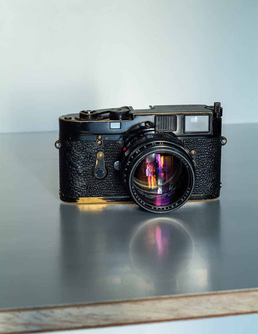 30年前、ヴィンテージライカの価格が今ほど高騰していなかった頃から松浦は60年代の手磨きレンズを追い続けてきた。同じモデルを“買っては撮り、合わなければ売ってまた次を買う”を繰り返し、自分の感覚にぴったりくる一本を探す。そして選び残されてきたのが、今M2に装着されている通称ノクティだ。浅草の早田カメラ店で出会ったもので、そこには使いたくなるもう一つのストーリーがある。