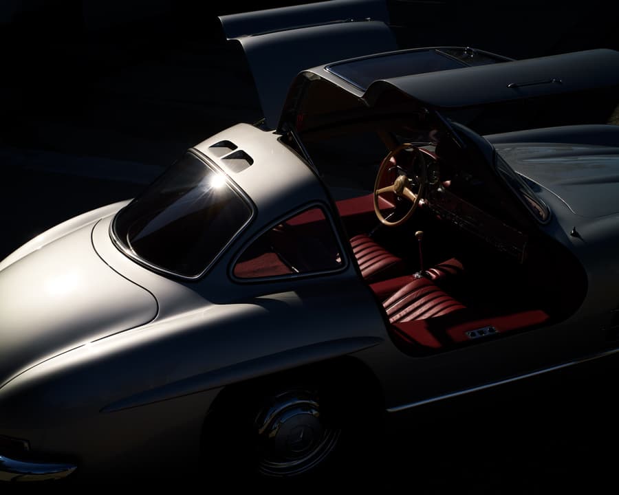 一方、カメラの方はというとライカのM4に合わせたズミルックス、SL2に合わせたアポズミクロンを普段のメイン機材として紹介してくれた。1967年代に生まれたM4と、現代のSL2。ともにライカではあるが、この新旧の組み合わせを坂矢は楽しんでいる。「機械においては、僕にとってスペックと見た目の両方がちゃんと合致してくれないと、まず使う気にならない。あるメーカーの車がどれだけ実用的に優れていても、ビジュアルが自分とマッチしないから一度も乗らないのと同じです。今日は1930年代の車で出勤しましたが、昨日は最新のベントレーに乗っていました。1930年代と2020年代、約100年分の感覚値を高速で行き来し、シャッフルして、水と油を無理やり混ぜたいタイプなんです。最新のアポズミクロンで輪郭がビシッとたった写真を撮った翌日に、1930年代の柔らかいレンズで滲んだ光を撮る。その往復運動で、自分の感覚を常にかき混ぜておきたい。ライカのレンジファインダーの魅力はというと、もう身体の一部ですね。M型に関しては使い慣れたという次元を超えていて、まばたきするみたいにピントが合う。0.2秒で察知してシャッターを切る。人間って、目の前の景色を0.2秒でほとんど理解しているのだと思います。だから僕は説明的な写真が撮れない。感動していないとシャッターを押せないんです。この前も美術館の取材に行ったとき、館長さんが説明してくださっている横で僕はもうバシャバシャ撮っていて。説明を聞いたあとに撮ると、説明ベースの写真になっちゃうんですよね。自分のフィルターを通さないとライカを持っている意味がないと思っているから」。