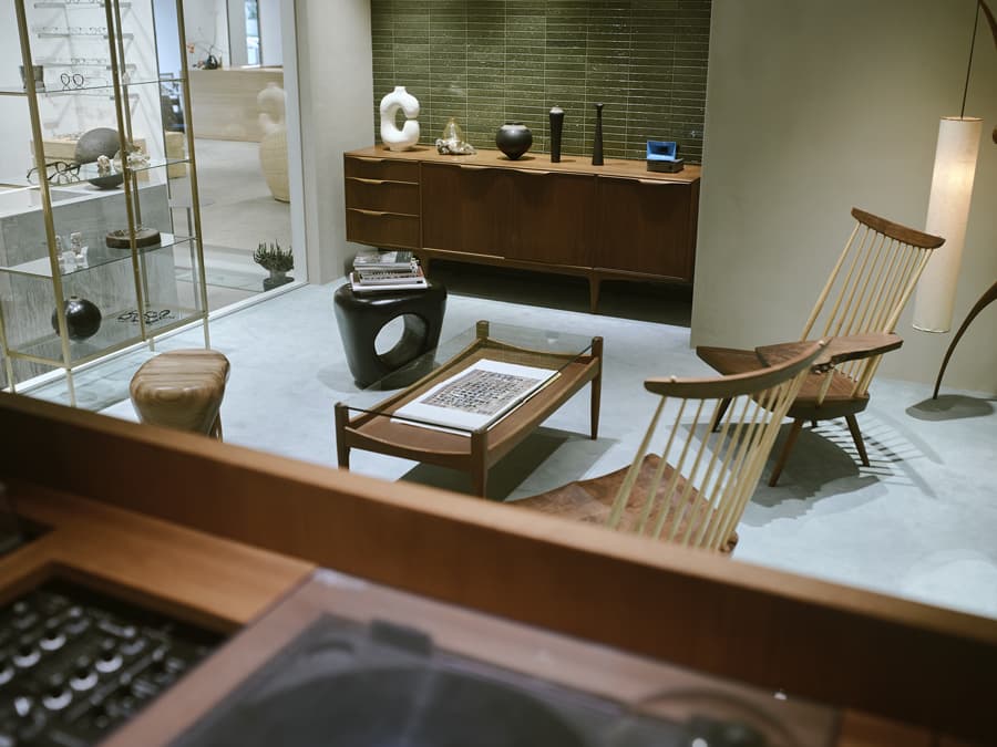 取材を行ったのは青山にあるユウイチ トヤマ.の旗艦店。暖かな日の当たる店内には宮城県の伊達冠石から切り出した什器や、作家 橋本知成が手がけた信楽焼など国内の工芸作家作品を中心に数多くの作品が飾られ、彼のインスピレーションの源を垣間見ることができる。店舗奥にあるプライベートオーダールームで外山の柔らかな口調のなか、取材が始まった。