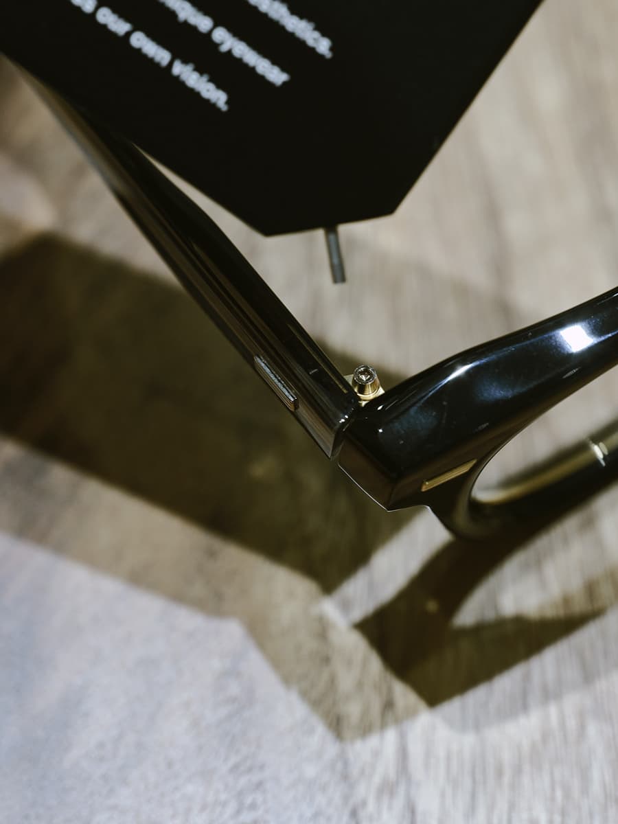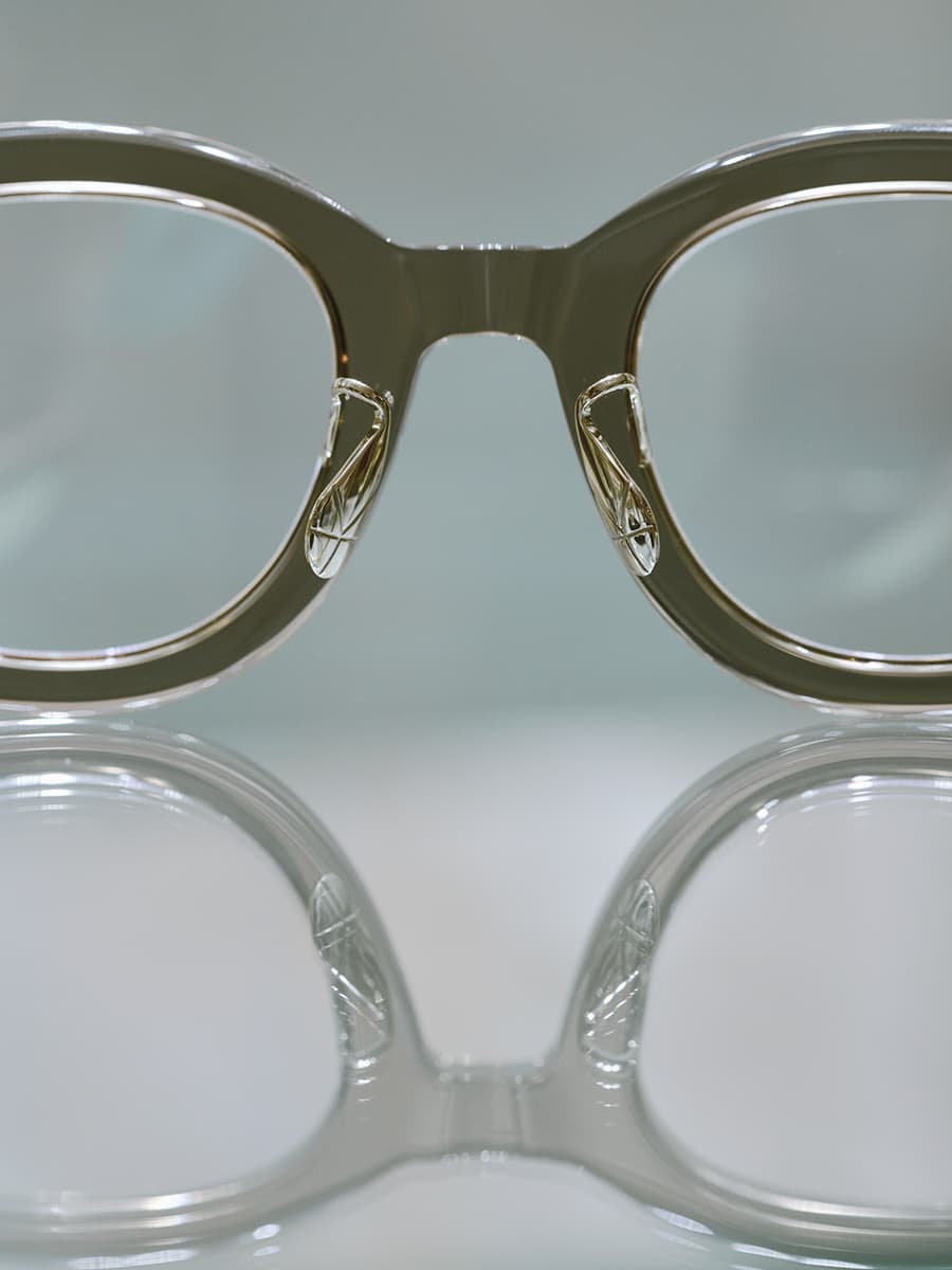 「生活全てがインスピレーションであるのと同じで、色々なデザイナーさんや作家さんの作品から大きな影響を受けています。特に年齢を重ね、日本の作家さんが持つ美学に感銘を受ける機会が増えました。色々な作品を鑑賞するときに必ず『作り手はどのように美しさを表現しているのだろう』や『見た人は何を良いと感じるんだろう』と考えて勝手な答えを見つけています。そういった作品と同じ美学が日本のものづくりにはしっかり裏打ちされていると感じます。ダイナミックな作品が評価されやすい世の中ですが、奥ゆかしい創造の中に美しさをまとわせる、そんなものづくりに影響を受けることが増えました。特に海外で展示会を行うようになった当初、『メイド・イン・ジャパン』でしか評価されず、デザインを見られていないことに強い違和感を感じたんです。そうした時にインスピレーションになったのが日本の工芸品たちでした。『素材と向き合う』ことが自分がデザインをするときの哲学なのは日本人の作家さんが素材と向き合い苦悩しながら控えめな曲線の美しさや、質感の出し方に考えているのを感じ取れたことがきっかけです。アイウェアのデザインはトレンドを意識することも大事ですが、ものづくりにおいては素材と向き合い、それをどう美しく魅せるのかを実直に考えることの大切さに気づかされました。例えばメタルパーツを透明なセルフレームで包んで透過させたら普通のセルフレームにはない美しさが生まれるのではないか、など苦労して考えたことが美しいフレームとして実現した時、その哲学を曲げずにデザインを続けることの大切さを感じます。