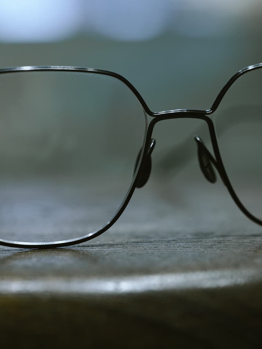 「『半完成品』とよく表現しているんですが、アイウエアのデザインは顔にかけて初めて完成するものだと思っています。今でこそ伊達メガネをファッションとして楽しむ方もいらっしゃいますが、根本的にアイウエアは矯正用のレンズを保持するための枠だと思っていて、アイウエアが顔の主役になるのは本来の用途として矛盾している気がするんです。僕があまりに奇抜なデザインにしないのは、顔をどう引き立たせるか、あくまでかける人がいて、表情を豊かにしたり、その人の生活や見栄えを引き立てるものであるべきというのが本質にあるんです。もちろんプロダクトとして美しくありたいという自分の思いはあるので、さまざまな角度からデザインは提案していきますが、『独創性のあるシェイプにするなら、シンプルな美しいフレームでシェイプを引き立てる』など、アイウエアデザインとしてのバランスを取ることはとても大切にしています」。