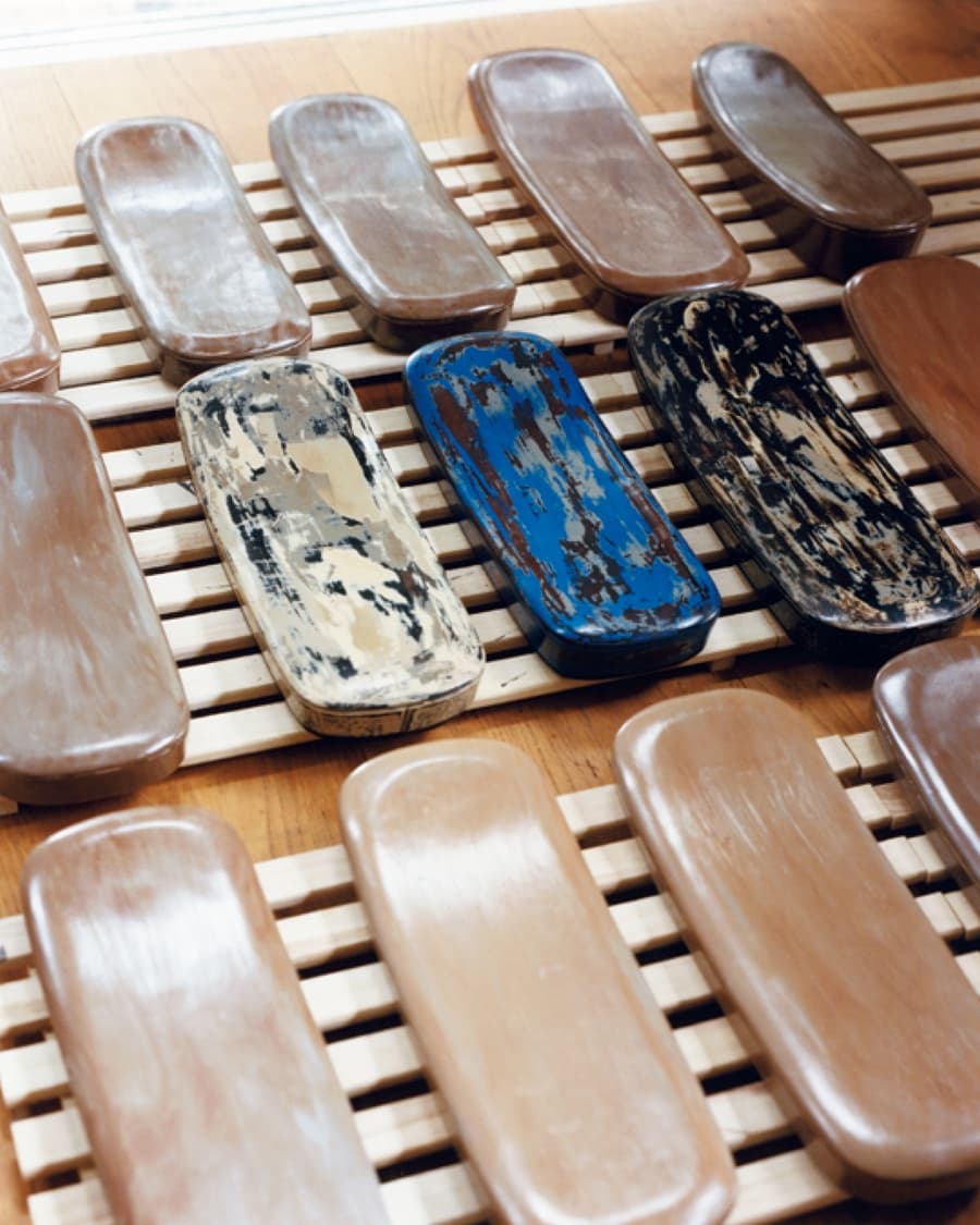 「名もなき職人っていう。変な奴がいたんだなって思われるぐらいでいいんです。でも、千年後こういう会話をされてたら、こんな幸せなことないですよ」。大きな変化を求めるのではなく、時間の中に佇み続けること。革に漆を重ねるという逆説的な行為は、変わりゆく世界の中で、変わらない時間を手繰り寄せようとする試みなのかもしれない。経年変化を楽しむ素材である革に、あえて変化を抑える漆を重ねる。その緊張関係の中で、本池大介は、過去から未来へと連なる“タイムレス”という概念を、現代の工芸として更新し続けている。