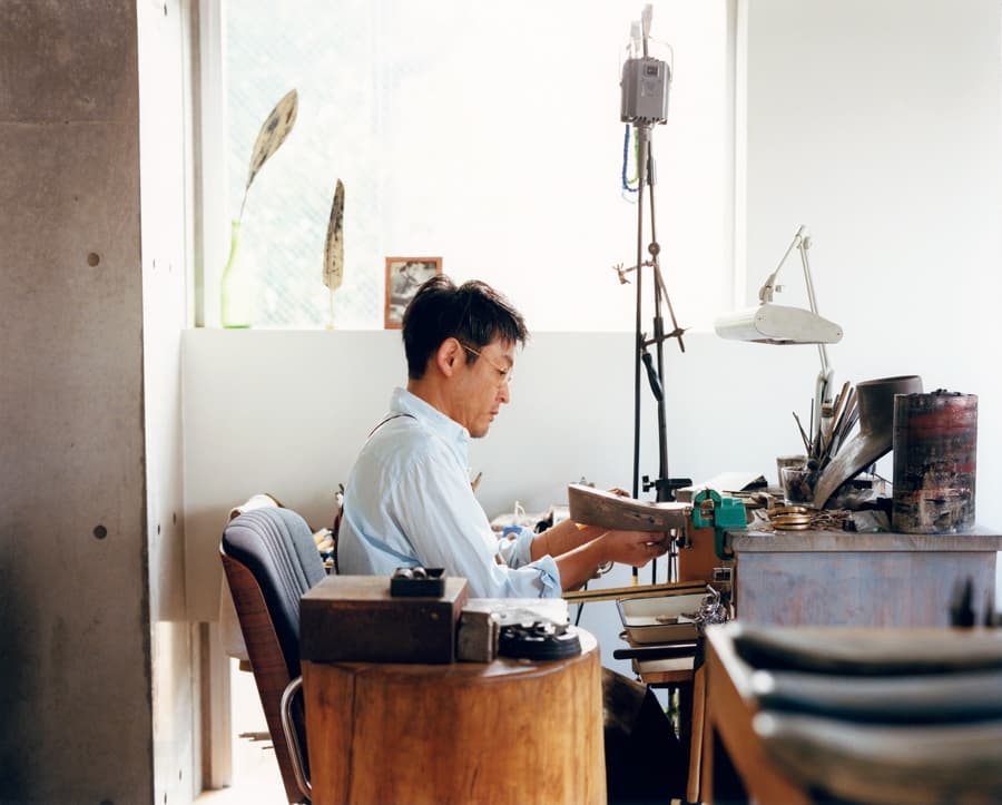 一方で漆は湿度と空気に反応しながら硬化し続け、時間とともに強度を増していく。相反する性質が一つの表面に共存すること。その緊張関係こそが、彼にとっての美しさだという。「革自体はやっぱり柔らかくなっていく。ただ表面の漆は硬くなっている。この相反する動きをする二つの素材の経年というのは面白いんです。重要文化財として奈良時代に作られた漆皮箱が東京国立博物館にありますが、漆革は千年以上持つんです。でも、千年っていうレベルのものを扱っていると、いわゆるレザープロダクトで言われる十年の経年は短すぎるんです。もっと年月を耐えられるものを作りたい。世間は、経年変化を欲しすぎたところがあるんじゃないか、って思うんです」。革という素材は本来、使い込むことで味わいが深まる“変化する素材”として語られることが多い。だが彼は、むしろ変わらないことの中に潜むわずかな変化に目を凝らす。表面が大きく変わらなくても、内部では確実に時間が蓄積されている。その見えない変化を受け入れることこそが、彼の言う“タイムレス”の感覚なのだ。