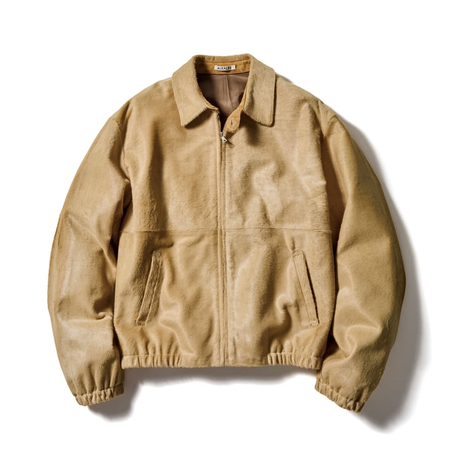 上質な毛付きカーフレザーを贅沢に用いたジップアップブルゾン。細くしなやかな毛並みと自然な光沢を持つカーフは、希少性の高い淡色原皮を採用しており、軽量でありながら高い耐久性を備えている。フルライニング仕様と上質な素材使いにより、これからの季節の変わり目にも活躍する一着だ。素材の希少性が、着用すること自体を特別な体験へと導いてくれることは間違いないだろう。