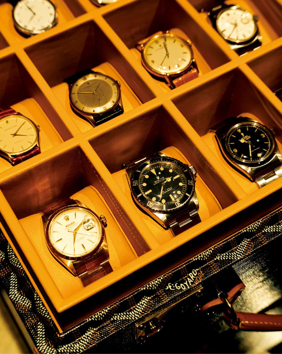 「スタイルに“遊び心”があること、これはとても大切にしています。例えば、定番のクラシックなジャケットにスポーツウォッチを合わせたり、靴下やネクタイなど小物の色味で遊び心をプラスするのがメゾン エ ヴォヤージュ流のジャケットスタイルです。ですから、ドレスウォッチを中心にセレクトしながらも、どこかユニークな個体も織り交ぜる。クラシックでありながら自由。イタリアの艶やかさと英国の堅実さの中間に位置するフレンチ的な遊び心が根底には流れているのです。それは、私たちが作る洋服にも同じことが言えます。フォックスブラザーズやベルベストなど世界中で愛され続けているブランドとの別注アイテムを作った時も、上質な素材を使いつつもブランドのタグをあえて見えないところにつけて、自分だけの洒落を楽しんでもらう。この店舗では、ジャケットやシャツのカスタムオーダーも受け付けていますし、ボタンやワッペンなどを付けて世界に1着だけのアイテムにも出会えます。そんな遊び心が提案するスタイルにもこの店舗にも反映されていると思います」。