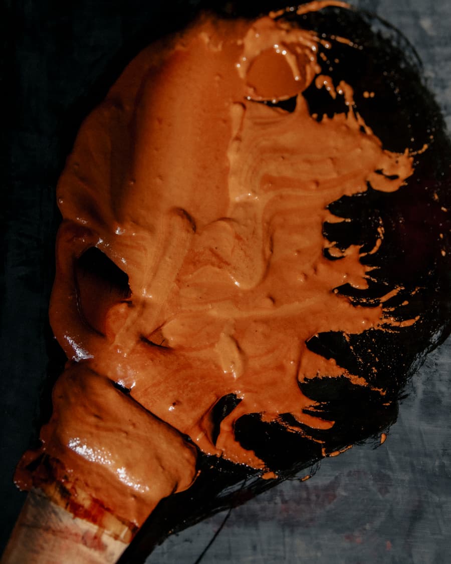 やはり色ですね。漆の色は顔料で決まるのですが、まずはヨシロットンさんが世の中にある漆の色や顔料を頭にインプットしてくれました。そして彼が表現したい色を表現するために僕がサンプルを作っていきました。今回の最終アウトプットの指標となるのは、9000年前から存在し、今回も物理的に唯一無二となる漆の色でした。だから僕が作ったぼかし塗りを見本にしながら、生地に染色してみてはまた生地の細かなアップデートを行い、全員が目指す色を表現するためにタトラスさんは何度も時間とコストをかけてくださりました。ここまで付き添ってくれるのはすごいなと驚かされました。
